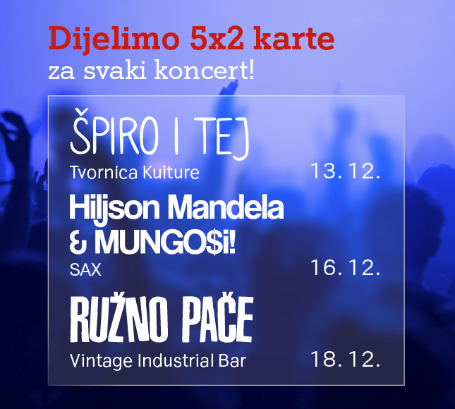 Na našem Instagramu odigraj nagradni natječaj i osvoji dvije karte za jedan od tri koncerta u prosincu!