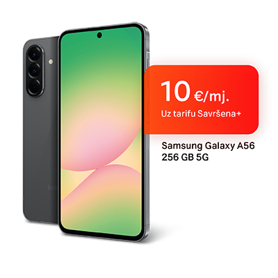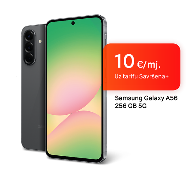 Ulovi svaki bitan trenutak uz trostruku kameru, snažan procesor i izdržljivu bateriju. Sjajne performanse Galaxy A56 čekaju te po top cijeni od 10 €/mj.